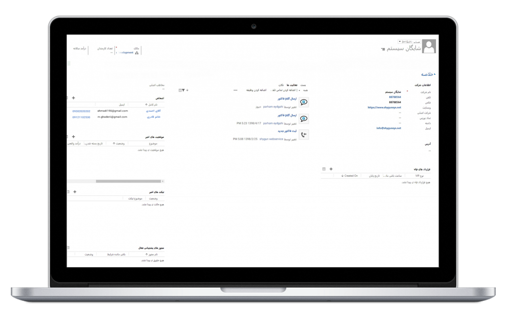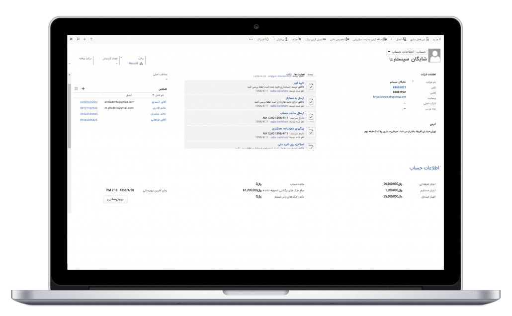 • بروزرسانی همزمان اطلاعات بین CRM و حسابگر به صورت Online