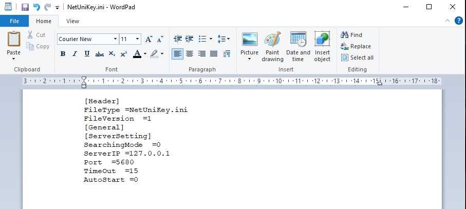 برای انجام تنظیمات قفل سخت افزاری در کلاینت (Client)، در مسیر نصب برنامه فایل NetUnikey.ini را با Notepad باز نمایید.   در قسمت "ServerIP"، آدرس IP سیستمی که قفل سخت افزاری به آن متصل است را وارد نمایید. در قسمت Port، شماره Port سرویس قفل را وارد نمایید. در قسمت TimeOut مدت زمانی که کلاینت می تواند به جستجو قفل بپردازد را وارد نمایید این زمان به طور پیش فرض 15 ثانیه است. نکته: در صورتی که تمام تنظیمات فوق در server و client صحیح است و خطای قفل دارید، FireWall و AntiVirus را درServer و Client کنترل نمایید.