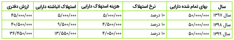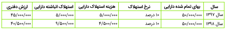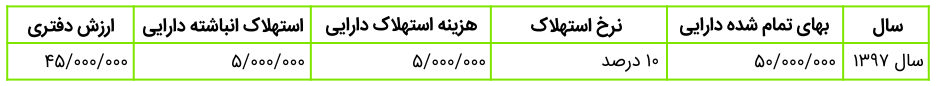 5000000 = 10% * (0 – 50000000) = هزینه استهلاک دارایی سال اول