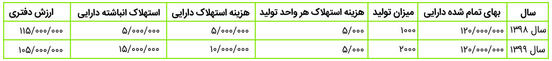 1- محاسبه استهلاک دارایی به روش خط مستقیم