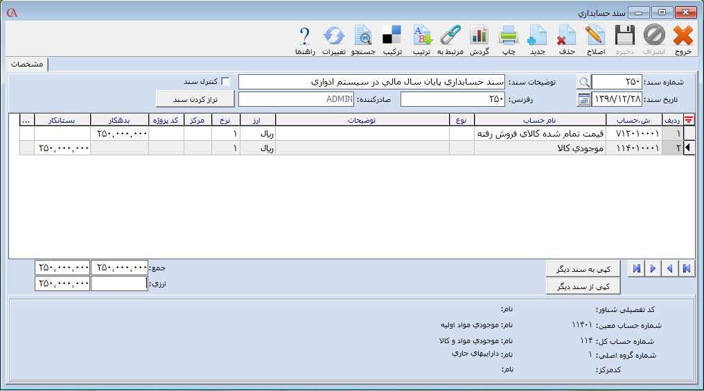 در این مقاله ابتدا به معرفی روش‌های ثبت و نگهداری کالاها در سیستم انبارداری و روش‌های قیمت گذاری کالا در نرم افزار حسابداری حسابگر می‌پردازیم. روش‌های ثبت و نگهداری کالا 1-روش ادواری 2-روش دائمی روش ادواری در روش ادواری در سیستم حسابداری طی سال مالی، حساب‌های مربوط به بهای تمام شده کالا در اسناد حسابداری هیچ تراکنش مالی ندارند. بدین صورت که در ثبت انواع فاکتور (خرید، فروش، برگشت از فروش و...) تنها تراکنشات مالی حساب‌های مربوط به مشتری و خرید یا فروش کالا منظور می‌شوند. در این حالت در انتهای سال مالی، با شمارش کالاها و تعیین ارزش کالا ها یک سند صادر می‌شود که در آن، حساب‌های موجودی کالا و بهای تمام شده کالا ثبت می‌شوند که در آن بهای تمام شده کالا بدهکار و حساب موجودی کالا بستانکار خواهد شد. در نرم افزار حسابداری حسابگر جهت استفاده از سیستم به صورت ادواری ابتدا باید عطف سند تعریف کنید. عطف سند این امکان را به شما می‌دهد که نحوه صدور سندهای اتوماتیک مربوط به فاکتورها را خودتان مشخص کنید. یعنی مشخص کنید که هنگام صدور سند برای فاکتورها چه حساب‌هایی بدهکار و بستانکار شوند. در سند فاکتور فروش سیستم ادواری، حساب مشتری به اندازه «مبلغ کل فاکتور» بدهکار و حساب فروش به اندازه «مبلغ فاکتور قبل از تخفیف و هزینه» بستانکار می‌شود. در صورتی که فاکتور دارای هزینه باشد در این صورت حساب‌های مربوط به هزینه، بستانکار و در صورتی که فاکتور دارای تخفیف باشد، حساب مربوط به تخفیف بدهکار می‌شوند. برای تعریف عطف سند سیستم ادواری در نرم افزار حسابداری حسابگر از منوی اطلاعات پایه > تعریف عطف‌های صدور سند را انتخاب کنید. در فرم باز شده بر روی دکمه جدید کلیک کنید. در قسمت شرح عطف، شرح عطف را وارد کنید. در ردیف اول جدول، در ستون نوع حساب از لیست باز شده گزینه «مشتری» را انتخاب کنید. در قسمت بدبس، «بد» را انتخاب کنید. در قسمت نوع مبلغ از لیست باز شده «مبلغ کل فاکتور» را انتخاب کنید. به ردیف بعدی بروید. در قسمت ش حساب، حساب فروش کالا را انتخاب کنید. در قسمت بدبس، «بس» را انتخاب کنید و در قسمت نوع مبلغ از لیست باز شده «مبلغ فاکتور قبل از تخفیف و هزینه» را انتخاب نمایید. به ردیف بعدی بروید. در این ردیف در قسمت ش حساب، حساب «تخفیفات فروش» را انتخاب کنید و در قسمت بدبس، «بد» را انتخاب کنید. در قسمت نوع مبلغ از لیست باز شده «جمع تخفیفها» را انتخاب کنید. اگر برای فاکتور هزینه دارید، در ردیف بعدی در قسمت نوع حساب، حساب هزینه ۱ را انتخاب نموده و در قسمت بد/بس، «بس» را انتخاب کنید و در قسمت نوع مبلغ، مبلغ هزینه ۱ را انتخاب کنید. همین کار را برای هزینه ۲، ۳ و... فاکتور انجام دهید. سپس بر روی دکمه ذخیره کلیک کنید. عطف فروش روشادواری در نرم افزار حسابداری حسابگرحالا برای فاکتورهای برگشت از فروش نیز مانند توضیحات داده شده و با توجه به عکس زیر، عطف سند تعریف کنید. معرفی عطف سند فاکتور برگشت از فروش در سیستم حسابداری پس از تعریف عطف‌های سند، برای فعال‌سازی آن‌ها از منوی اطلاعات پایه > تعریف پیش‌فرض‌ها > عطف‌های صدور سند در جعبه متن روبروی پیش‌فرض عطف فاکتور فروش و فاکتور برگشت از فروش، عطف‌هایی را که در مراحل فوق تعریف کرده‌اید را انتخاب کنید. - بعد از تعیین عطف‌ صدور سند می‌توانید فاکتور فروش و برگشت از فروش را با توجه به عطف‌ تعریف شده صادر کنید. همانطور که در تصویر فاکتور فروش زیر مشاهده می‌کنید در قسمت عطف سند، شماره عطف سند تعریف شده نمایش داده می‌‌شود. فاکتور فروش در حسابگردر ادامه یک نمونه سند حسابداری مربوط به فاکتور فروش با توجه به عطف سند تعریف شده قرار داده شده است.سند حسابداری فاکتور فروش در روش ادواری در نرم افزار حسابداری حسابگربا توجه به توضیحات داده شده در سیستم ادواری در پایان سال مالی یک سند دستی صادر می‌شود که در آن بهای تمام شده کالا بدهکار و حساب موجودی کالا بستانکار خواهد شد. در ادامه نمونه سند حسا