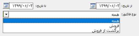 چنانچه در قسمت نوع فاکتور یکی از موارد فروش یا برگشت از فروش را انتخاب نمایید، در قسمت محدوده شماره میتوانید محدوده شماره فاکتورهای مورد نظر جهت حذف را انتخاب کنید.