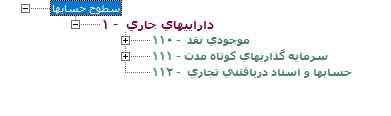 بعد از معرفی سرگروه داراییهای جاری، سرگروه تعریف شده در نمودار سطحی حسابها به صورت زیر ایجاد میشود. توجه داشته باشید که سرگروه حساب در نرم افزار حسابگر با رنگ قرمز نمایش داده میشود.