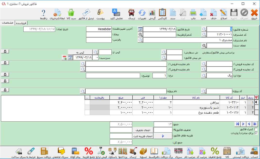 چنانچه در این فرم بر روی هر ردیف دابل کلیک کنید، فرم فاکتور مربوط به آن نمایش داده میشود.