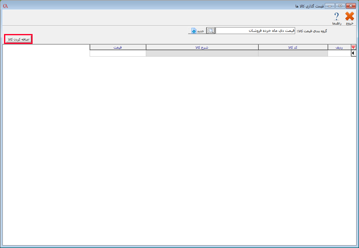 برای اضافه کردن کالا به گروه بندی انتخاب شده بر روی دکمه اضافه کردن کالا کلیک کنید.