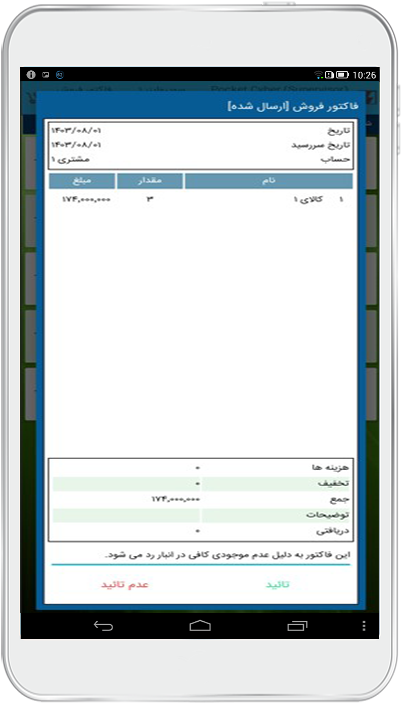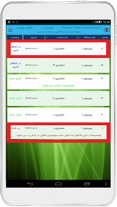 - امکان تایید و رد فاکتور توسط سوپروایزر و ثبت دلیل عدم تایید فاکتور ویزیتور