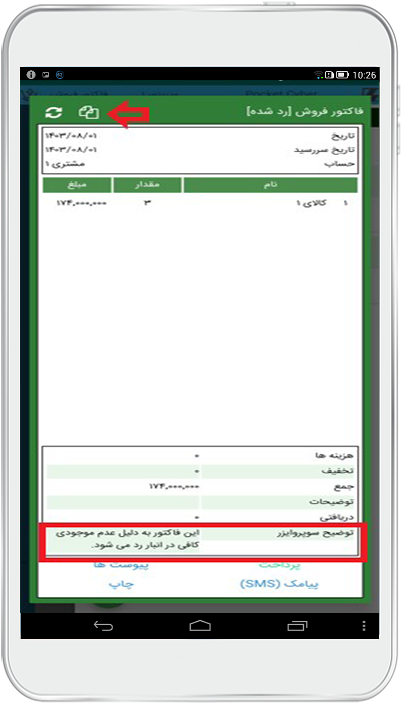 - امکان ویرایش فاکتور رد شده توسط ویزیتور